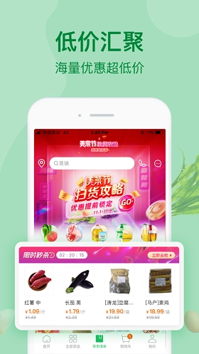 美菜商城,一款专注食材采购的软件,为你呈上全面且优质的食材采购服务。无论是瓜果蔬菜、禽蛋肉类,还是水产冻货、米面粮油,亦或是酒水饮料、调料餐厨等各类食材与商品,这里应有尽有。价格十分实惠,每日都有折扣与福利活动等你来参与,助你更省钱地购入所需商品。美菜商城不仅服务众多家庭,还能为全国超200万家餐厅提供采购及配送服务。这般实用的采购软件,值得你信赖。