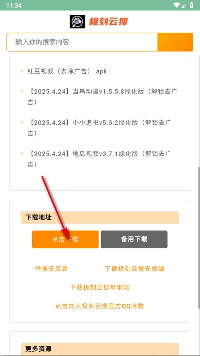 1、打开App进入首页,在搜索框中输入你想查找的资源名称,从搜索结果中选择你想要的资源。