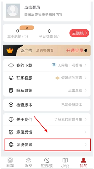 2. 在【我的】界面,点击下方的【系统设置】选项。