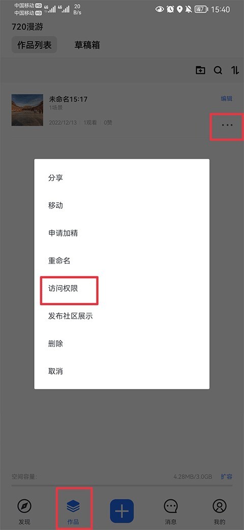 1. 开启软件,当作品制作完毕,能在作品列表里查看制作好的全景图。点击作品右侧的菜单选项,就能为作品设定访问权限。