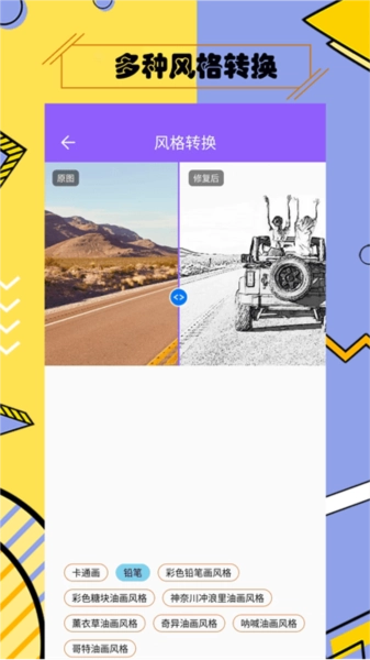 修复照片是一款实用工具,它能借助AI算法智能修复老旧照片。无论是老旧照片,还是模糊照片,都能被修复至较为良好的状态。不仅如此,它还能为黑白照片上色,为尘封已久的回忆增添一抹色彩!