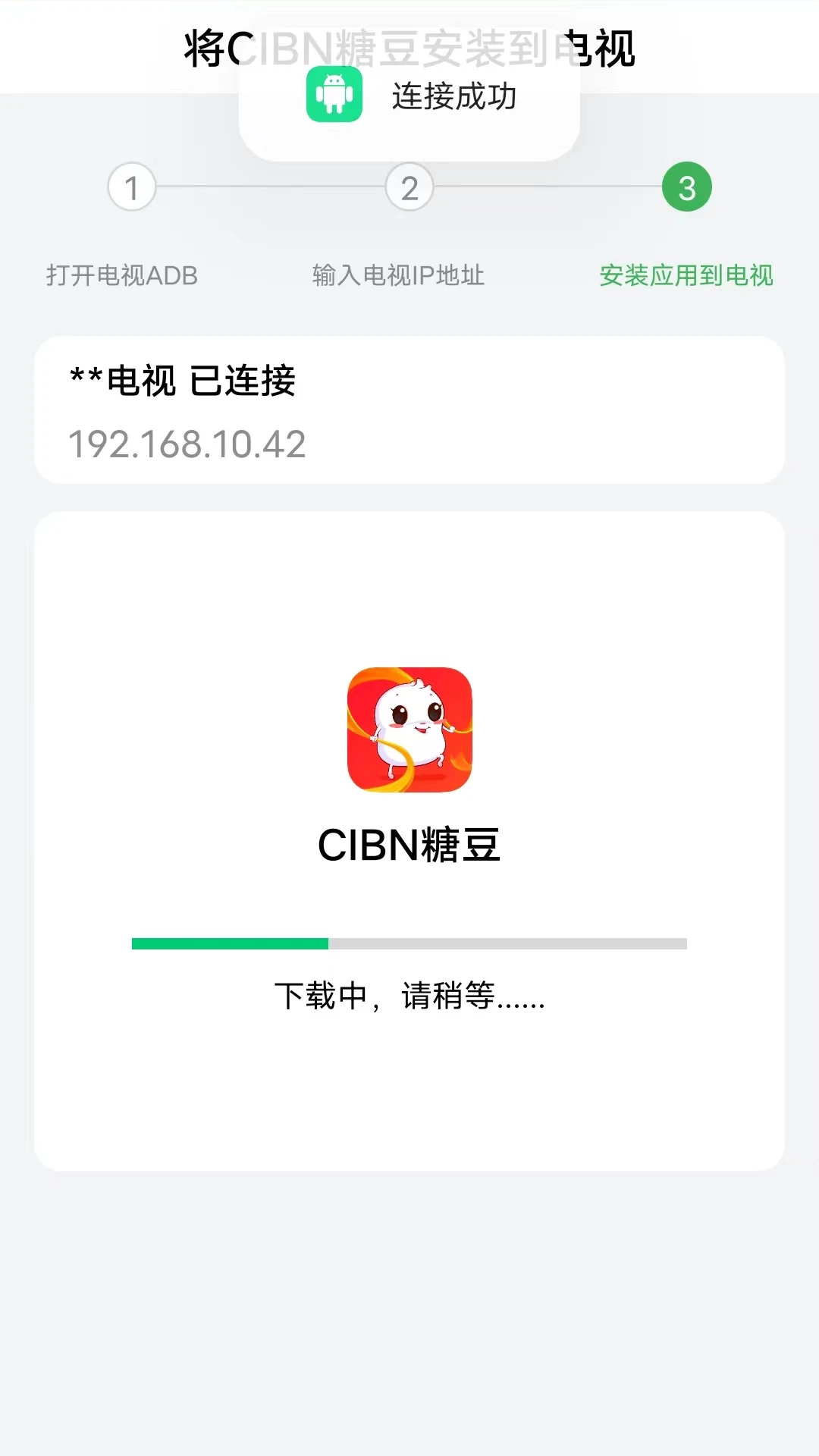 3.将手机和电视设置在同一个网络中,就能在线完成应用安装了