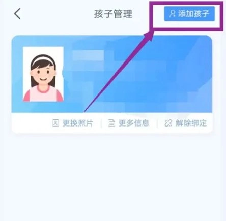 在儿童管理页面,若之前解除了与孩子的绑定关系,后续若想重新关联,可通过“添加孩子”功能来实现。