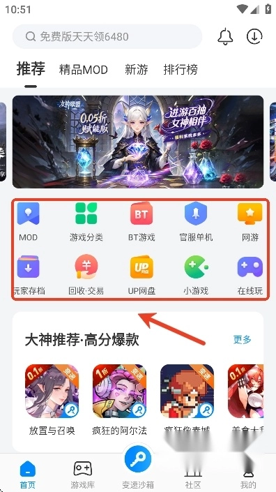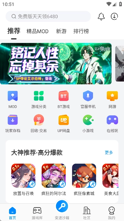 进入应用后,用户能在主界面浏览各类游戏分类,像模组游戏、变态版游戏、单人游戏等都可供选择。