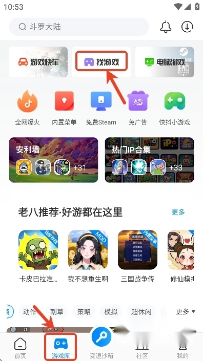 用户还能直接点击游戏库中的“找游戏”选项,通过游戏分类来筛选出自己感兴趣的游戏。