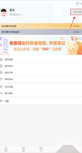 然后点击右上角的“添加孩子”按钮,进入绑定流程,完成学生绑定即可。