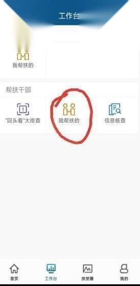 进入工作台点击“我帮扶的”,进入你的联系户。