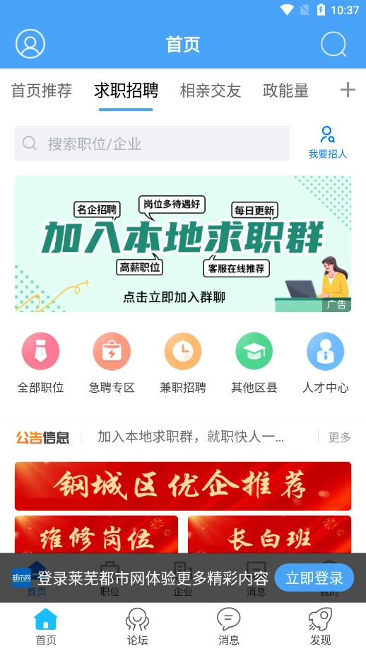,本地用户规模已突破10万。每天有超5万同城用户在此交流本地热点新闻、分享各类爆料八卦、推荐身边特色美食、展示生活精彩瞬间,还能参与丰富的线上线下聚会活动。通过都市网,你可以轻松找到莱芜本地志同道合的兴趣圈子。【莱芜同城便民
