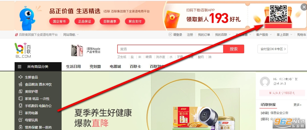 在i百联首页可以看到对应的二维码安装方式,直接选择扫码安装就行。