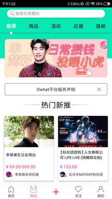 Owhat堪称追星女孩的必备神器,所有明星的公开行程都会在这个平台上展示,粉丝们能根据自己的时间和活动安排,选择合适的机会去见偶像!而且在这里还能获取到海量明星周边,它是一个一站式的追星服务平台,无论是明星同款单品还是周边海报等,都可以在这里购买到,另外还有超多限量独家资源,大家可千万别错过!