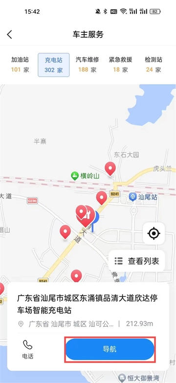 系统自动定位,推荐最近的充电站点,支持一键导航。