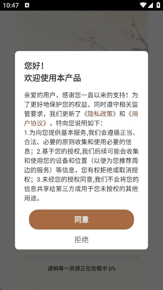 安装软件,点击同意隐私政策和用户协议