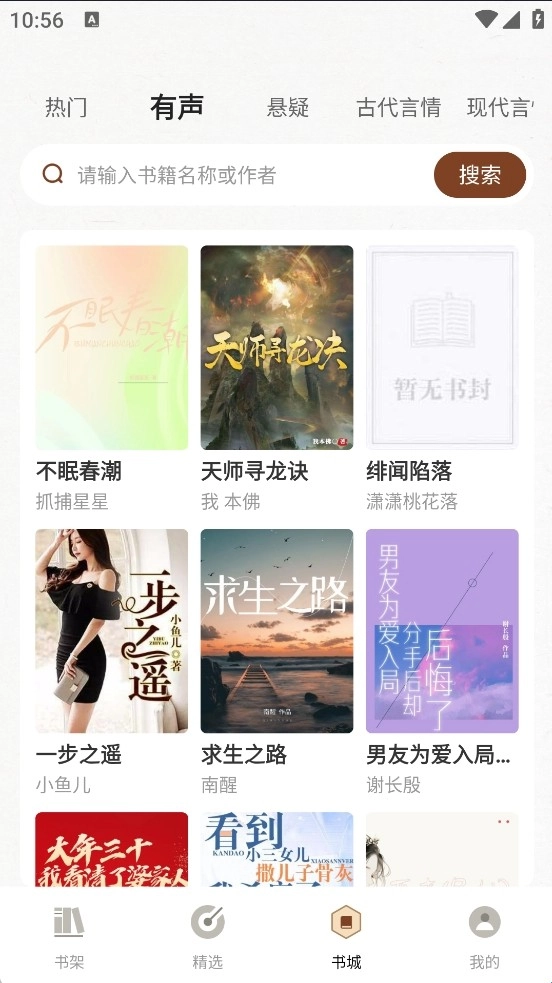 打开度听小说应用,进入后点击底部导航栏的“书城”选项,接着在书城页面顶部找到“有声”标签并点击,之后浏览页面找到你感兴趣的有声小说,点击进入即可。