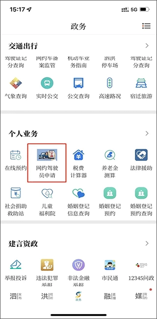 在“个人业务”版块中,点击“网约驾驶员申请”。