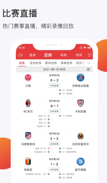 比赛直播:NBA、欧冠、亚冠、英超、意甲、中超等全球重大赛事尽在掌握;