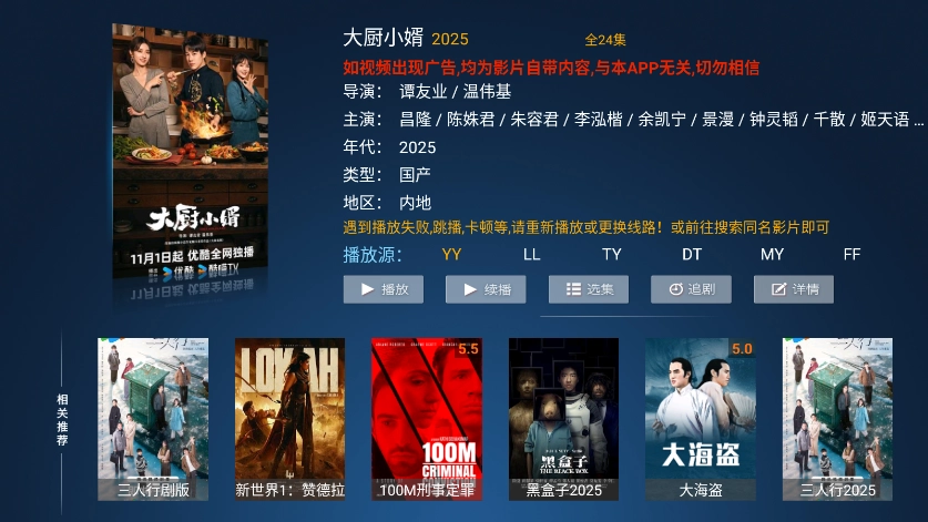 软件对大屏幕的观看体验进行了优化,使你在家中大型电视机上也能享受到高清晰度的视频,提升了电影的观看质量。