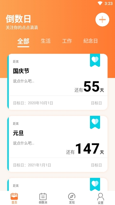 纪念日倒数日免费版是一款工具类应用,专注于记录和提醒生活里的重要日期。它采用简洁直观的交互设计,搭配丰富功能,助力用户高效管理纪念日、生日、节日等时间节点,兼顾实用性与仪式感。这款软件提供两种记录方式:正向计时的日子和倒计时的日子。既能展示“恋爱已度过XX天”这类累计时长,也能设置“距离考试还有XX天”的倒计时提醒,满足不同场景的使用需求,确实十分实用!