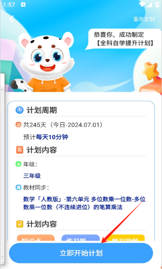 计划制定完成后,点击“立即开始计划”按钮,然后依照计划开展学习。