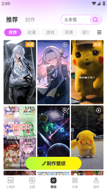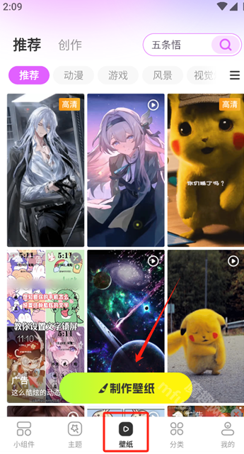 想找壁纸的朋友可以点击下方的“壁纸”按钮,这里面有丰富的壁纸资源,而且还能通过页面的“制作壁纸”功能自定义制作壁纸。