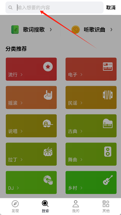 启动软件后,在界面右上角的搜索框内输入与歌单相关的信息。