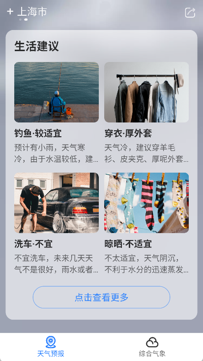 生活指数:涵盖晴天、雨天等不同天气下的各类生活指数,助力您便捷规划室内外活动。