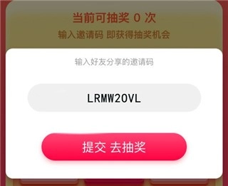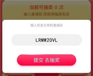 在这个界面输入邀请码【LRMW2OVL】并提交,就能直接领取约5元的红包奖励,同时输入邀请码还可获得一次抽奖机会。