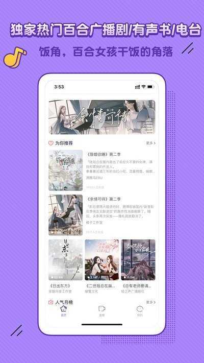 每月都有热门作品上新,听听爆款内容,跟着大家一起听广播剧准没错