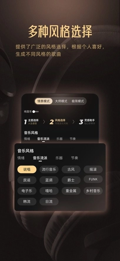 提供丰富多样的风格选项,可依据个人偏好,生成不同风格的歌曲