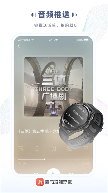 喜马拉雅穿戴版是一款很实用的应用,在运动时可以听书、听课、听段子。它能方便地把音频推送到手表上,还能连接华为耳机和智能眼镜,让智能穿戴设备变成存储有声内容的图书馆。
