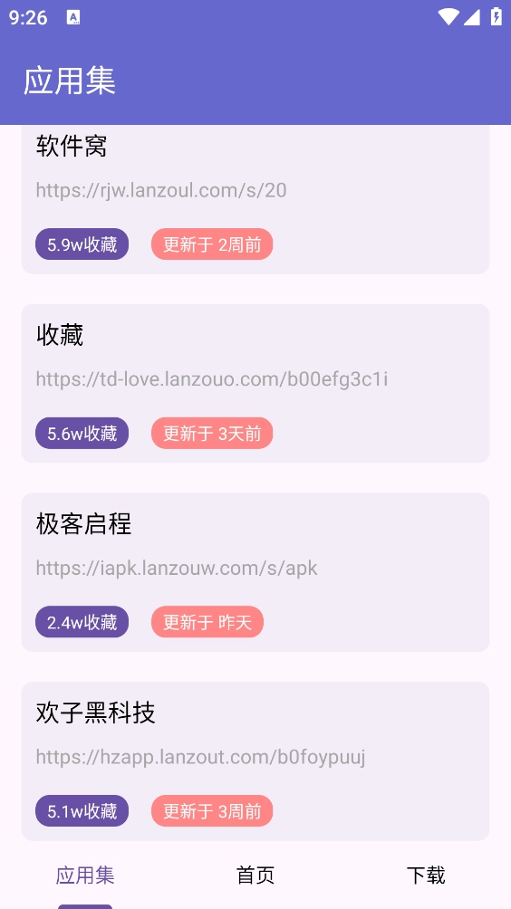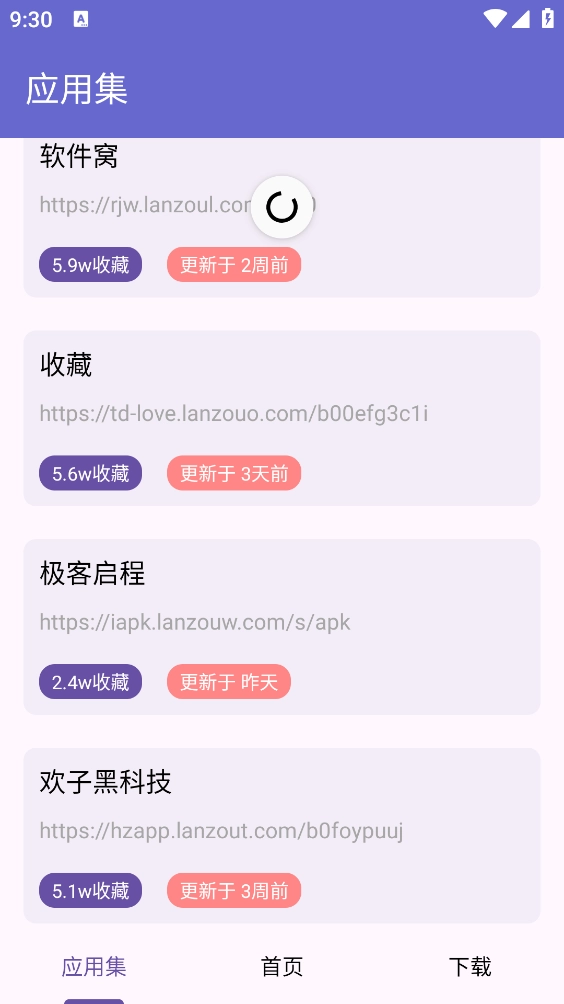 "应用集"涵盖多个板块的软件资源。