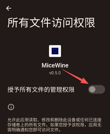 然后在设置页面开启应用的文件访问权限。