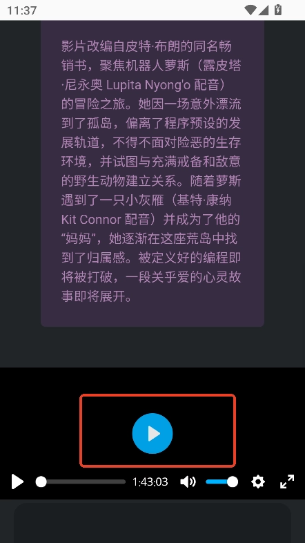 找到喜欢的影片后,滑动到页面下方,点击播放按钮就能观看了。