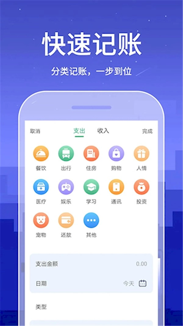 涵盖手动记账、周期记账等多样化形式,能够适配不同场景下的使用需求。