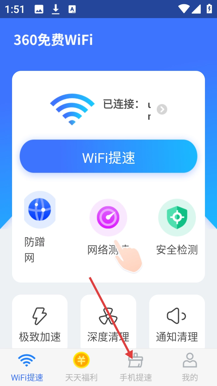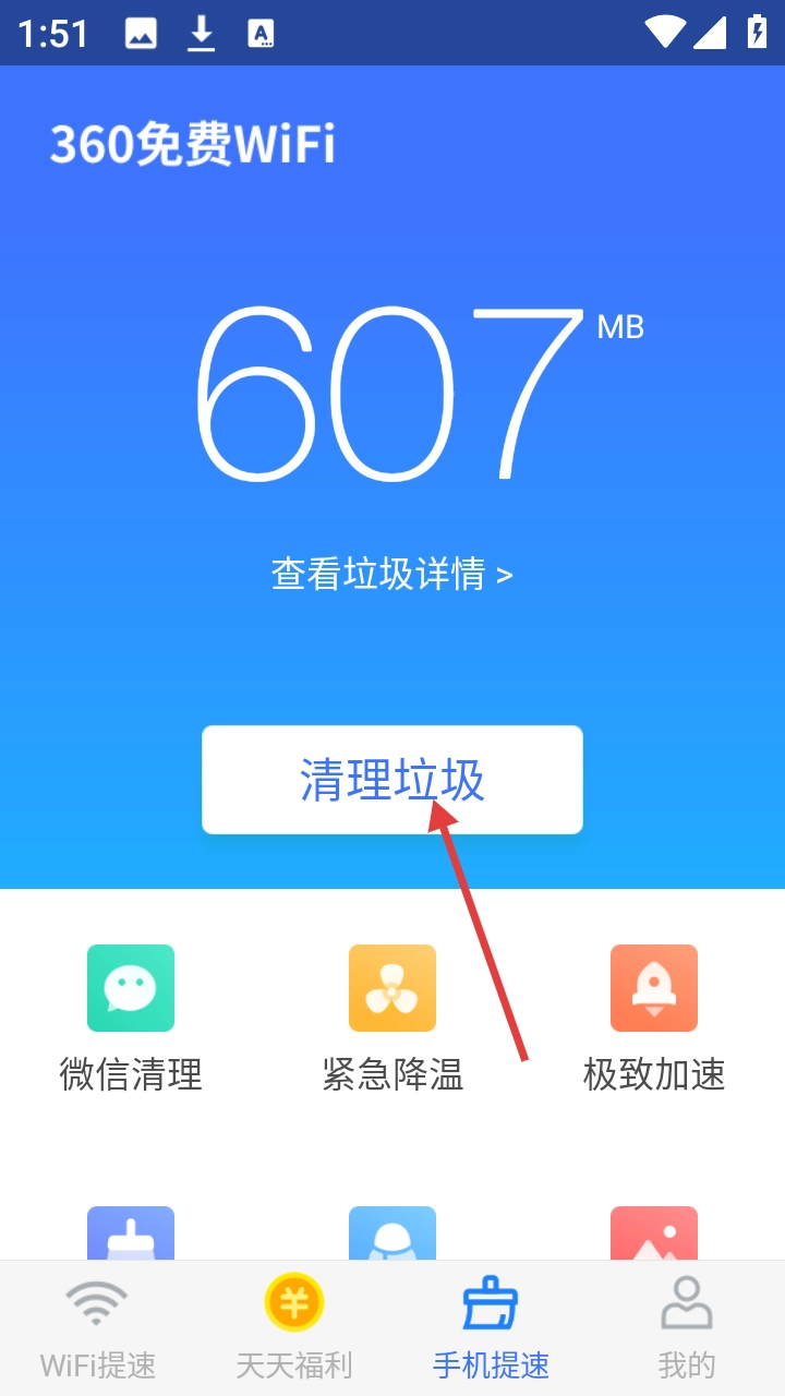 1、在主界面点击【手机提速】,进入手机提速页面。