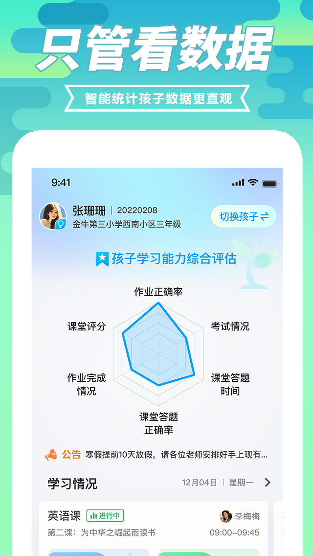 2、支持多平台使用,不管是手机还是平板,家长都能随时随地查看和管理孩子的教育信息。