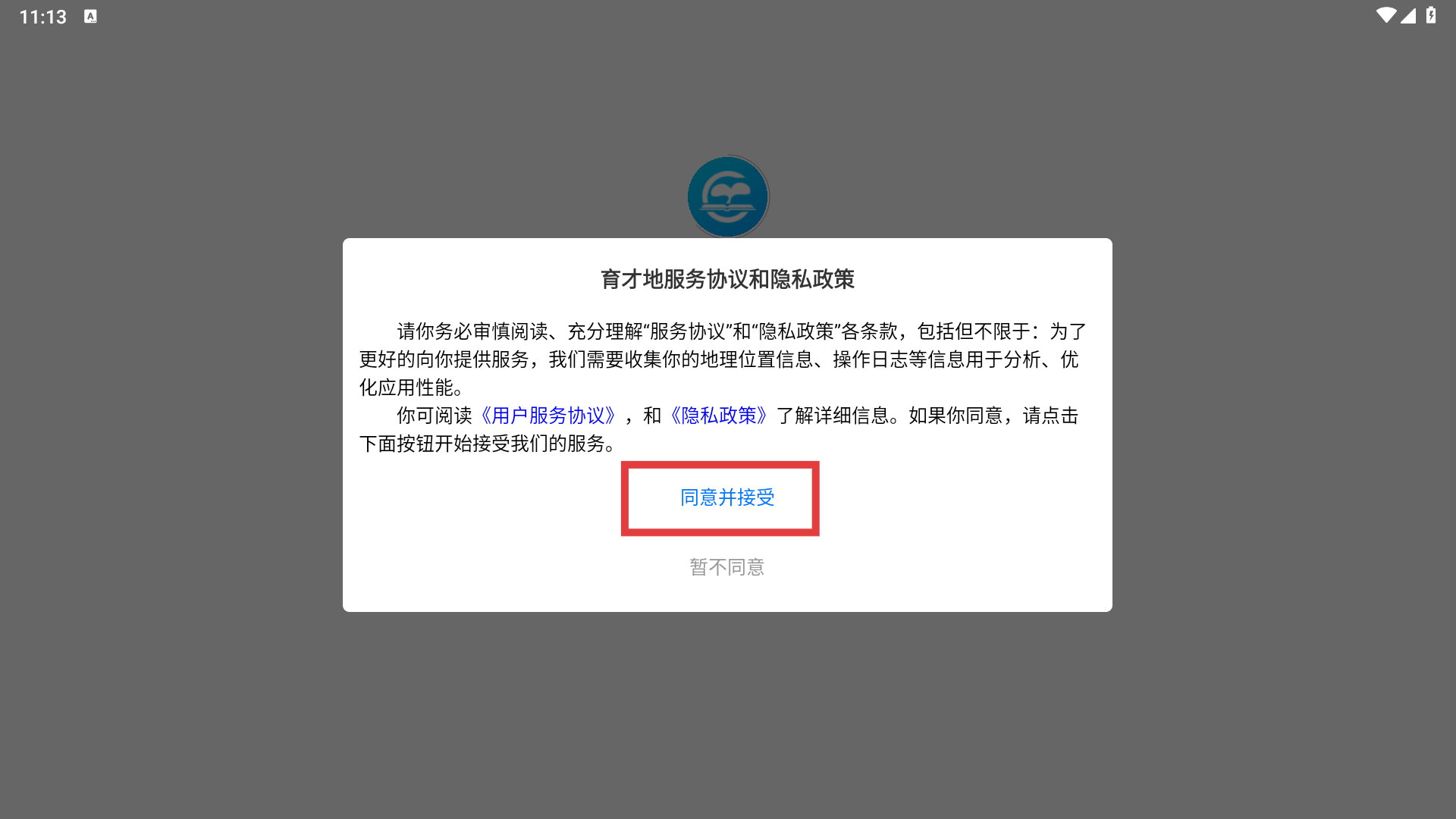 1、进入育才地服务协议页面后,点击【同意并接受】功能按钮,以此确认接受相关条款。