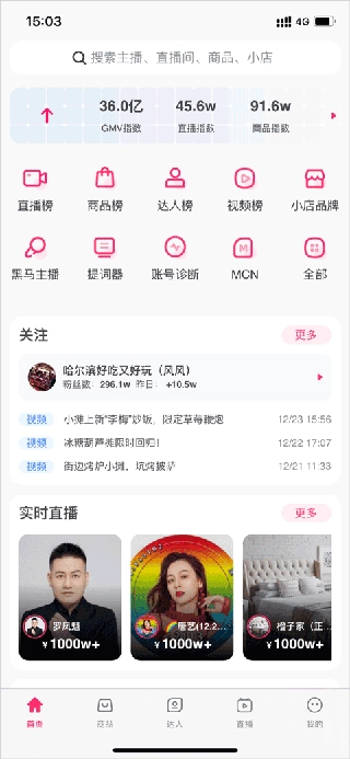 1、平台收录的账号数量突破999万,用户可通过搜索功能查看账号的视频内容、直播动态以及粉丝画像等关键数据。