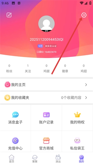 2、进入个人页面后,点击右上角的设置图标,即可进入【系统设置】页面。
