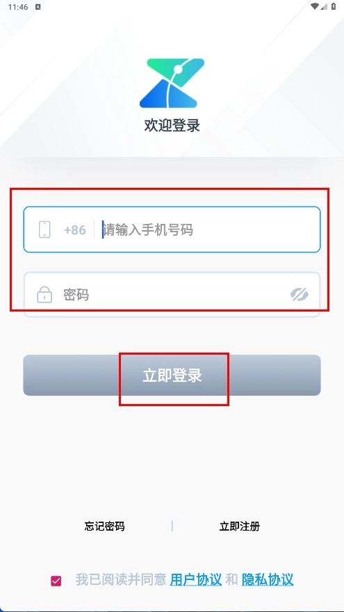 3、在登录页面填写手机号码与密码,点击【立即登录】功能按钮即可完成登录操作。