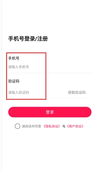 1、在手机号登录/注册页面输入手机号和验证码。