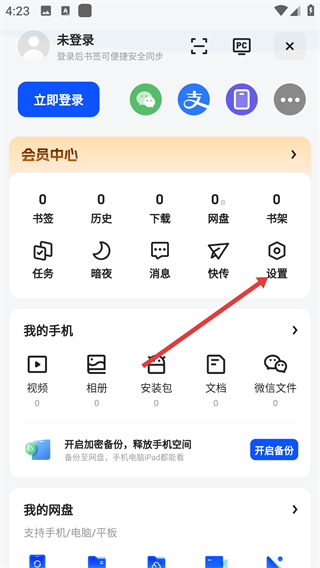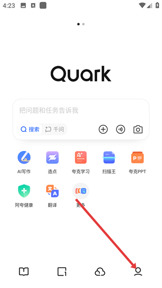 1、在夸克主界面点击右下角的【我的】图标,即可进入个人页面。