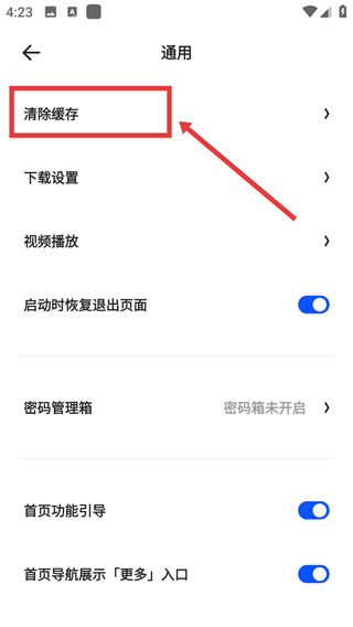 4、进入通用设置页面,找到并点击【清除缓存】选项,以此执行缓存清理的操作。