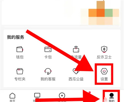 1、打开手机里的西瓜视频应用,进入后点击页面右下角的“我的”选项,接着在“我的服务”区域下方找到并选择“设置”功能。