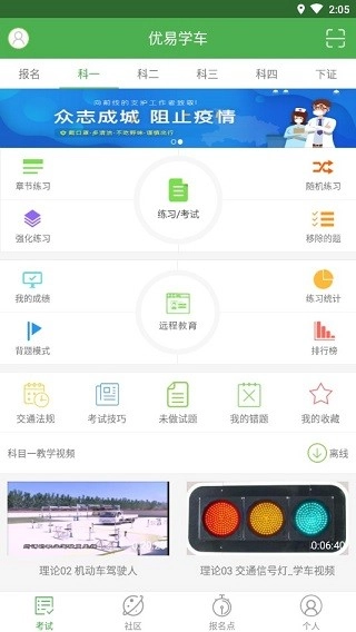 1、视频学习:系统为您配备了科目一、科目二及科目三的现场考试或训练真人视频教学资源,助力您获得更优质的学习体验;