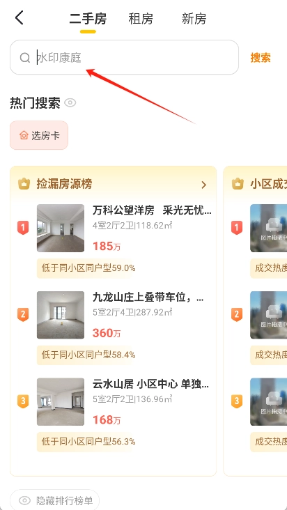 3、还能借助搜索框输入区域、价格等感兴趣的房源相关信息,来开展精准搜索。