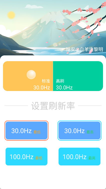 2、选择刷新率:打开应用后,在主界面会看到多个刷新率选项,例如60Hz、90Hz、120Hz和144Hz。