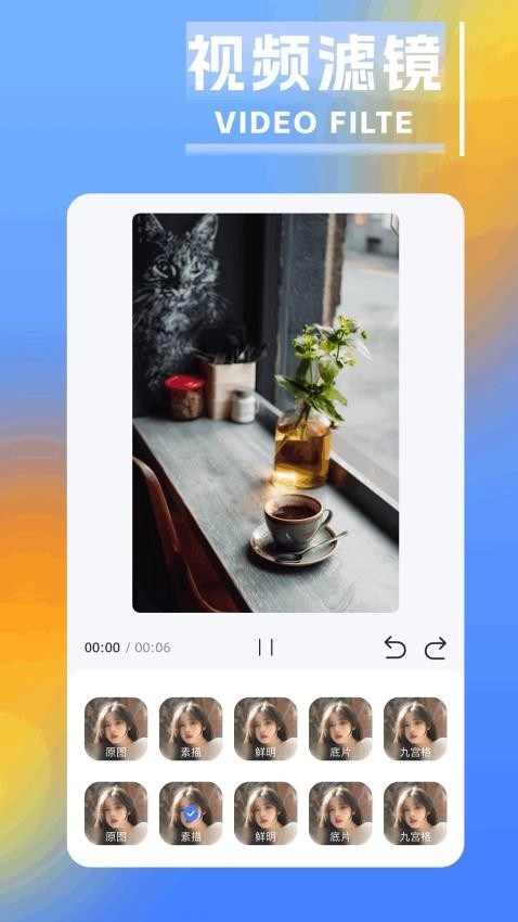 3、提供多种精美视频滤镜样式,用户可自由选择素颜、鲜明等不同滤镜效果来美化视频,增强画面呈现质感。