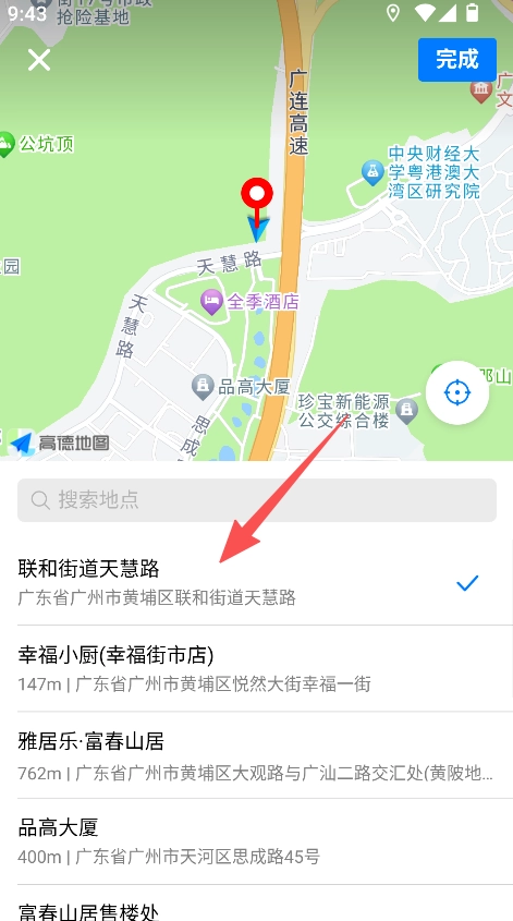 2、位置选择融合地图与地点列表两种形式,操作直观且易于上手,有效降低了服务位置信息填写的复杂程度。