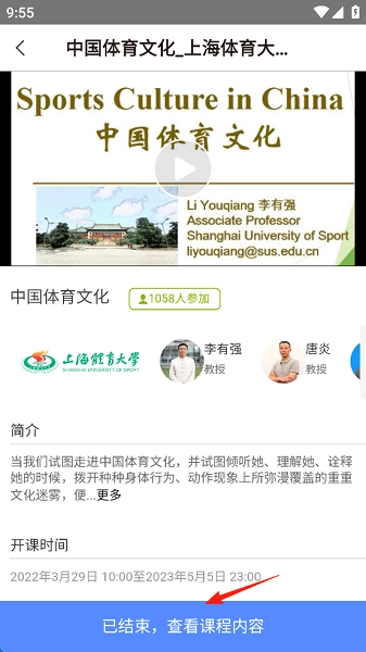 5、点击下方课程,“已结束,查看课程内容”。