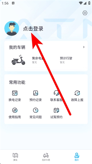 1、启动ATN智慧换电应用,点击底部导航栏的“我的”选项,进入个人中心页面。